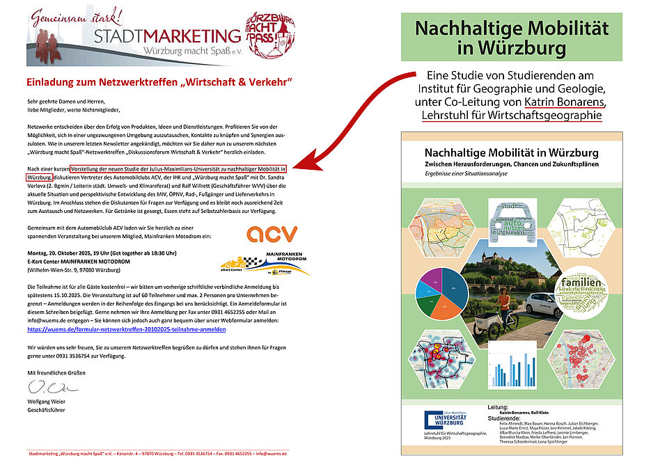 10.10.2025Am 20. Oktober 2025 um 19 Uhr wird im Rahmen des Netzwerktreffens des Vereins Würzburg macht Spaß e.V. der Projektbericht „Nachhaltige Mobilität in Würzburg“ vorgestellt, welcher von Studierenden im Projektseminar unter der Co-Leitung von Katrin Bonarens erarbeitet wurde.